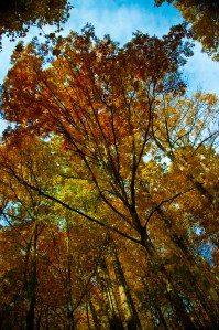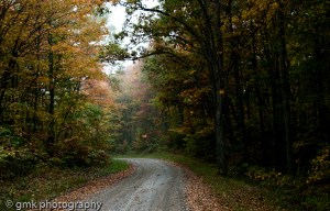 Leaf-strewn country roads, leaves falling as I drive with the top down, deep colors in the forests, tobacco hanging in aging barns, hay waiting in long fields and orchards full with ripe, red apples.