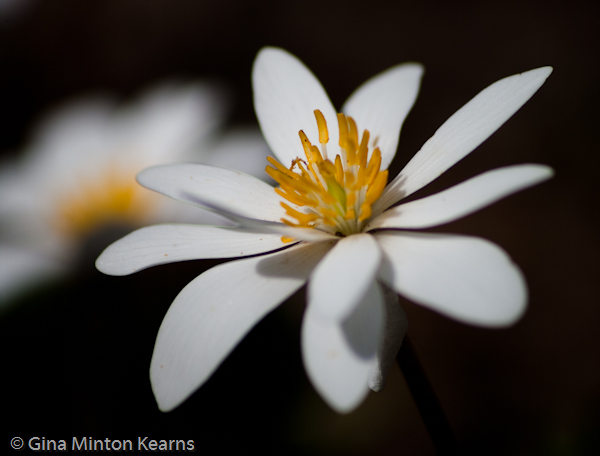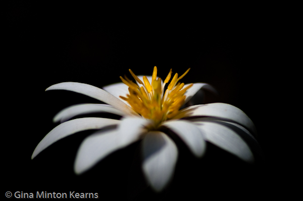 Of course, as on any successful excursion, hike or trail shoot, I became unbelievably filthy and muddy by crawling beneath branches and vines on the edge of the creek in order to preserve, through images, the delicacy of fragile blooms that help to define spring.